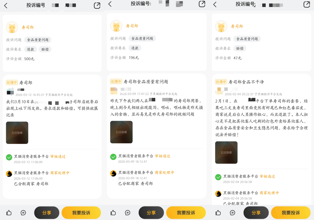 3月以来,多名消费者向媒体反映,曾在寿司郎就餐后出现腹泻、呕吐等症状。
