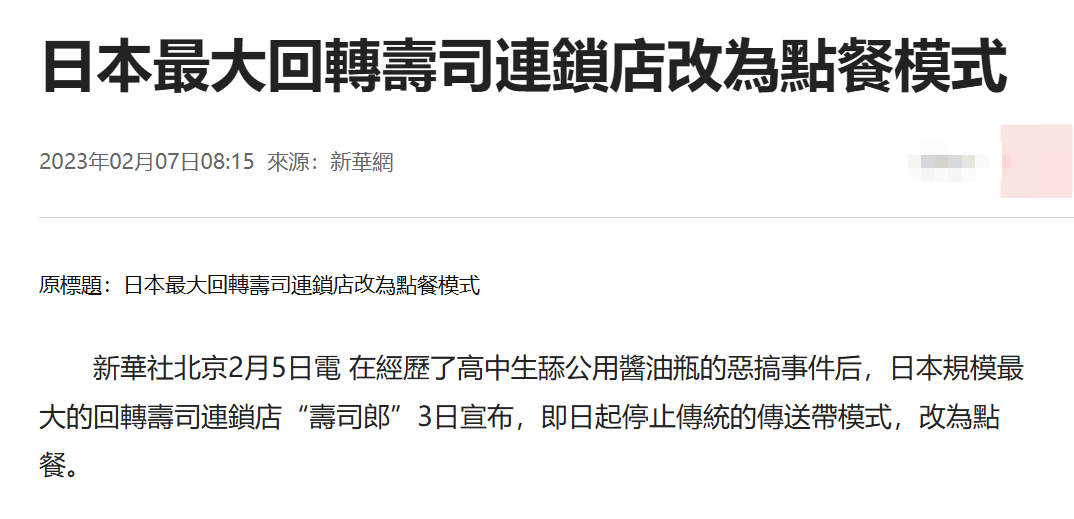 同样是在2023年,一名高中生在日本的寿司郎店内舔公用酱油瓶、并用沾口水的手指污染过路寿司,视频传至社交媒体引发舆论哗然。