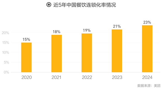 据《2025中国餐饮连锁化发展白皮书》显示,当前餐饮的连锁化率已经提升至23%,不到十年几乎翻了一倍。